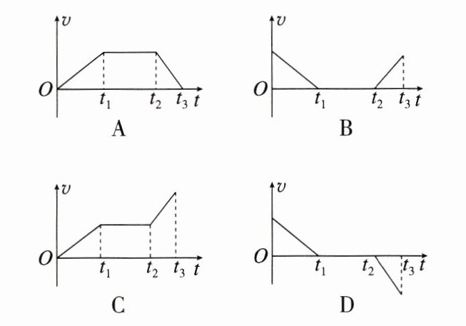 解析 $x - t$图像斜率的物理意义是速度,在$0\sim t_1$时间内,$x - t$图像斜率增大,汽车的速度增大;在$t_1\sim t_2$时间内,$x - t$图像斜率不变,汽车的速度不变;在$t_2\sim t_3$时间内,$x - t$图像的斜率减小,汽车做减速运动,综上所述可知A中$v - t$图像可能正确。故选A项。