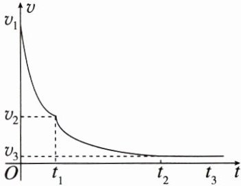 5. (2022·湖南)(多选)神舟十三号返回舱进入大气层一段时间后,逐一打开引导伞、减速伞、主伞,最后启动反冲装置,实现软着陆。某兴趣小组研究了减速伞打开后返回舱的运动情况,将其运动简化为竖直方向的直线运动,其$v-t$图像如图所示。设该过程中,重力加速度不变,返回舱质量不变,下列说法正确的是(