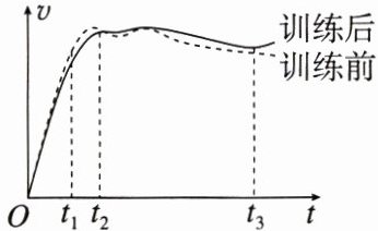 )A.$0\sim t_1$时间内,训练后运动员的平均加速度大