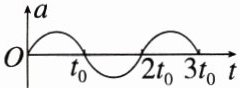 2. (2023·湖北)(多选)$t = 0$时刻,质点$P$从原点由静止开始做直线运动,其加速度$a$随时间$t$按图示的正弦曲线变化,周期为$2t_0$。在$0\sim3t_0$时间内,下列说法正确的是(