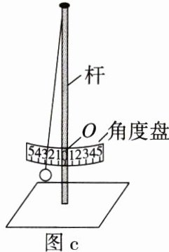 (2)单摆实验的装置示意图如图c所示,其中角度盘需要固定在杆上的确定点O处,摆线在角度盘上所指的示数为摆角的大小.若将角度盘固定在O点上方,则摆线在角度盘上所指的示数为5°时,实际摆角