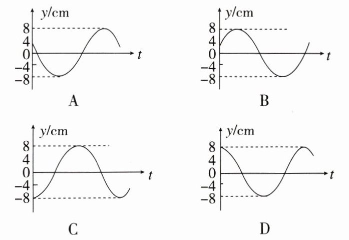 8. (2023·湖北)一列简谐波沿x轴正向传播,波长为100cm,振幅为8cm.介质中有a和b两个质点,其平衡位置分别位于x=-40/3 cm和x=120cm处.某时刻b质点的位移为y=4cm,且向y轴正方向运动.从该时刻开始计时,a质点的振动图像为(