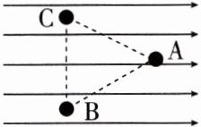 练2(2023·广东三模)如图所示,三个带电小球$A$、$B$、$C$分别位于等边三角形的三个顶点且放在光滑绝缘的水平桌面上,空间存在水平且与$BC$连线垂直的匀强电场,三个小球可看成质点且均静止不动,则三个带电小球所带电荷的电性及电荷量的关系是(