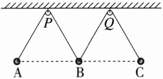 练1(2023·山东三模)如图所示,水平天花板上的$P$、$Q$两点各固定一个光滑定滑轮,两根细绳穿过定滑轮分别连接$A$、$B$、$C$三个带电绝缘小球,三个小球保持静止状态且处于同一高度,定滑轮与小球在同一竖直面内。已知$A$、$C$球的质量均为$m$,$B$球的质量为$M$,$\triangle PAB$、$\triangle QBC$均为正三角形,重力加速度为$g$。则(