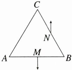 5.(2023·全国乙卷)如图,等边三角形$\triangle ABC$位于竖直平面内,$AB$边水平,顶点$C$在$AB$边上方,$3$个点电荷分别固定在三角形的三个顶点上。已知$AB$边中点$M$处的电场强度方向竖直向下,$BC$边中点$N$处的电场强度方向竖直向上,$A$点处点电荷的电荷量的绝对值为$q$,求: