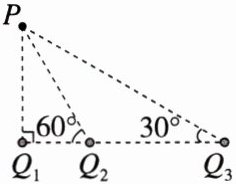 1.(2023·湖南)如图,真空中有三个点电荷固定在同一直线上,电荷量分别为$Q_1$、$Q_2$和$Q_3$,$P$点和三个点电荷的连线与点电荷所在直线的夹角分别为$90^{\circ}$、$60^{\circ}$和$30^{\circ}$。若$P$点处的电场强度为零,$q > 0$,则三个点电荷的电荷量可能为(