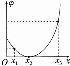 练10(2023·湖北模拟)(多选)一电子只在静电力作用下沿$+x$方向运动,其所在位置处的电势$\varphi$随位置$x$变化的图线如图中抛物线所示,下列说法正确的是(