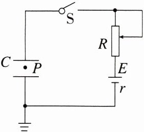 练4(2023·天津二模)(多选)如图所示电路,平行板电容器$C$的下极板接地,当开关$S$处于闭合状态时,一带电油滴恰能静止在电容器中的$P$点,下列说法正确的是(
