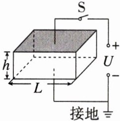 练5 如图所示为静电除尘器,该除尘器的上下底面是边长为 $ L = 0.20 \, m $ 的正方形金属板,前后面是绝缘的透明有机玻璃,左右面是高 $ h = 0.10 \, m $ 的通道口。使用时底面水平放置,两金属板连接到 $ U = 2000 \, V $ 的高压电源两极(下板接负极),于是在两金属板间产生一个匀强电场。均匀分布的带电烟尘颗粒以 $ v = 10 \, m/s $ 的水平速度从左向右通过除尘器,已知每个颗粒带电荷量 $ q = +2.0 × 10^{-17} \, C $,质量 $ m = 1.0 × 10^{-15} \, kg $,不考虑烟尘颗粒之间的相互作用和空气阻力,并忽略烟尘颗粒的重力。在闭合开关后: