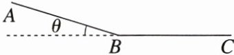 4. (2021·河北)如图,一滑雪道由 $AB$ 和 $BC$ 两段滑道组成,其中 $AB$ 段倾角为 $\theta$,$BC$ 段水平,$AB$ 段和 $BC$ 段由一小段光滑圆弧连接。一个质量为 $2\ kg$ 的背包在滑道顶端 $A$ 处由静止滑下,若 $1\ s$ 后质量为 $48\ kg$ 的滑雪者从顶端以 $1.5\ m/s$ 的初速度、$3\ m/s^2$ 的加速度匀加速追赶,恰好在坡底光滑圆弧的水平处追上背包并立即将其拎起。背包与滑道间的动摩擦因数为 $\mu = \frac{1}{12}$,重力加速度取 $g = 10\ m/s^2$,$\sin \theta = \frac{7}{25}$,$\cos \theta = \frac{24}{25}$,忽略空气阻力及拎包过程中滑雪者与背包的重心变化。求: