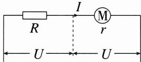 练6 (2024·河北模拟)内阻为$r$的电动机与阻值为$R$的电阻串联接入电路,电动机正常工作。此时电动机两端的电压与电阻两端电压均为$U$,电路中的电流为$I$,电动机消耗的电功率为$P_{M}$,电路的总功率为$P_{总}$。则(