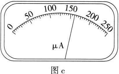 (2) 当标准毫安表的示数为$16.0mA$时,微安表的指针位置如图c所示,由此可以推测出改装的电表量程不是预期值,而是