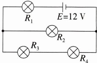3. (2022·江苏)如图所示,电路中灯泡均正常发光,阻值分别为$R_1=2\Omega$,$R_2=3\Omega$,$R_3=2\Omega$,$R_4=4\Omega$,电源电动势$E=12V$,内阻不计,四个灯泡中消耗功率最大的是