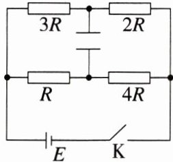 2. (2023·海南)如图所示电路,已知电源电动势为$E$,内阻不计,电容器电容为$C$,闭合开关$K$,待电路稳定后,电容器上电荷量为