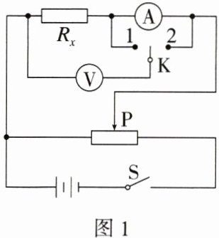 $$ A;将 $ K $ 掷到 2,电压表和电流表的读数分别为 $ U_2 = 1.75 $ V,$ I_2 = 0.33 $ A. 由此可知应采用电流表外