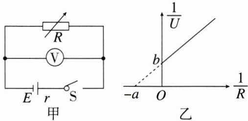 例 4 (2023·广东二模) 某同学利用图甲的电路图测量电源的电动势 ($ E $) 和内阻 ($ r $). 图中 $ V $ 为理想电压表,$ R $ 为电阻箱.