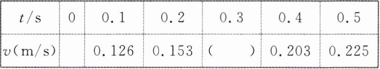 (4)v - t图线斜率表示加速度,在图线上找到两个方便读数且相距较远的点,计算加速度为a = $\frac{0.30 - 0.10}{0.76}$ m/s² ≈ 0.26 m/s²。