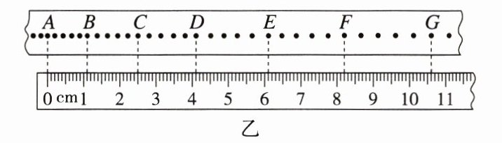 (2) 该同学在老师指导下纠正上述错误后,正确打出纸带如图乙所示,根据纸带计算各点瞬时速度,将 $ D $ 点的速度填入下表(保留三位有效数字)。