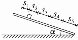 【解析】 由于5段位移的时间间隔连续相等,为减小误差,去掉第一段后由Δx = aT²可得a = $\frac{(s_5 + s_4) - (s_2 + s_3)}{(2ΔT)^2}$ ≈ 0.43 m/s²;对小铜块由牛顿第二定律可得mg sinα - μmg cosα = ma,代入数据解得μ ≈ 0.32。
