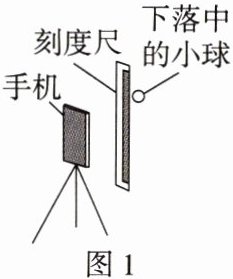 > 例 4 (2020·江苏)疫情防控期间“停课不停学”,小明同学在家自主开展实验探究。用手机拍摄物体自由下落的视频,得到分帧图片,利用图片中小球的位置来测量当地的重力加速度,实验装置如图 $ 1 $ 所示。
