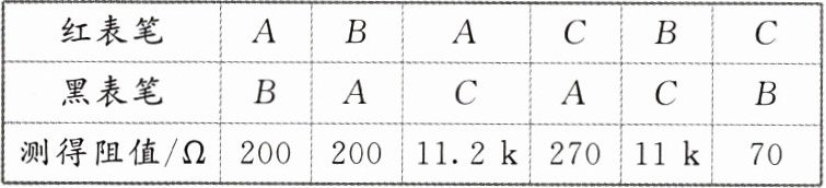 (2) 测量结果表明,黑箱里没有电源,但测得任两个接线柱间的电阻如下表所示.