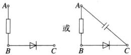 (2)根据欧姆挡的测量可以断定:AB间肯定有电阻;BC之间肯定有二极管;AC间肯定有电阻和二极管的串联;电路连接如图;