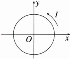 练3 (2024·杭州模拟)如图所示,在竖直平面$xOy$内有一环形金属线圈,圆心$O$处放置一小磁针,可在水平面内自由转动,受地磁场的影响,此时小磁针的$N$极正好指向$x$轴正方向。当环形线圈中通入逆时针方向、大小为$2A$的电流时,小磁针的$N$极与$x$轴正向的夹角为$37^{\circ}$,已知环形电流在$O$点产生的磁感应强度与环形电流的大小成正比。已知$\sin37^{\circ}=0.6$,当小磁针的$N$极与$x$轴正向的夹角为$45^{\circ}$时,环形线圈中通入的电流约为(