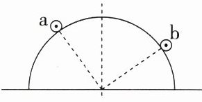 例1 (2024·河南模拟)如图所示,横截面为半圆、表面光滑的柱体固定在水平面上,长度相同的足够长直导线$a$、$b$水平放在光滑圆弧面上,通入同向电流后均能静止在圆弧面上,已知$a$与圆心连线和竖直方向夹角为$30^{\circ}$,$b$与圆心连线和竖直方向的夹角为$60^{\circ}$,则下列判断正确的是(