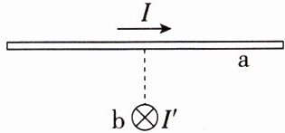2. (2022·江苏)如图所示,两根固定的通电长直导线$a$、$b$相互垂直,$a$平行于纸面,电流方向向右,$b$垂直于纸面,电流方向向里,则导线$a$所受安培力方向(