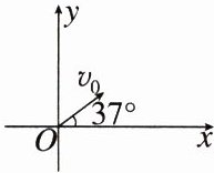 练6(2024·安徽模拟)如图所示,在 $ xOy $ 平面的第一象限内加一垂直于纸面向外、磁感应强度为 $ B $ 的匀强磁场,一质量为 $ m $、带电荷量为 $ q $ 的正电粒子(重力不计)从坐标原点以速度 $ v_0 $ 射入第一象限,速度方向与 $ x $ 轴正向成 $ 37° $ 角,粒子打在 $ x $ 轴上 $ P $ 点(图中未画出),若把磁场换为与 $ xOy $ 平面平行且与 $ x $ 轴正向成 $ 53° $ 角斜向下的匀强电场,同一粒子仍从坐标原点以同一速度 $ v_0 $ 射入,粒子也打在 $ P $ 点,已知 $ \sin 37° = 0.6 $,$ \cos 37° = 0.8 $,求: