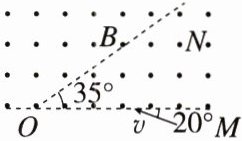 例 7 (2024·重庆模拟)(多选)平面 $OM$ 和平面 $ON$ 之间的夹角为 $35^{\circ}$,其横截面(纸面)如图所示,平面 $OM$ 上方存在匀强磁场,大小为 $B$,方向垂直于纸面向外. 一质量为 $m$,电荷量绝对值为 $q$、电性未知的带电粒子从 $OM$ 上的某点向左上方射入磁场,速度与 $OM$ 成 $20^{\circ}$ 角,运动一会儿后从 $OM$ 上另一点射出磁场. 不计重力. 则下列几种情形可能出现的是(