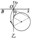 【解析】若$y$轴右侧的磁场垂直纸面向里,由题意作出粒子的运动轨迹,如图甲所示