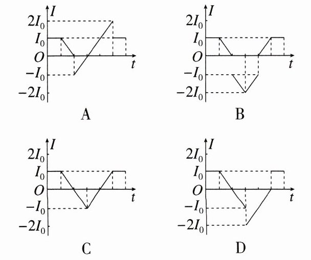 [解析] 当$b$点接触$MQ$前,$bc$切割磁感线,电动势$E = Blv,I_0 = \frac{E}{R} = \frac{Blv}{R}$,根据楞次定律,电流方向为逆时针,正方形线框继续向右运动,在$ad$边进入磁场前的时间内,$bc$边上下两部分在方向不同的磁场中运动,在垂直纸面向里的磁场中运动的部分长度越来越短,在垂直纸面向外的磁场中运动的部分长度越来越长,但在垂直纸面向里的磁场中运动部分的长度一直大于在垂直纸面向外的磁场中运动部分的长度,所以这段时间内电流方向为逆时针,且电流逐渐减小,当$ad$边运动至与$MN$重合时,电流为$0$,$ad$边刚进入时,根据楞次定律,电流方向为顺时针,$bc$边上下两部分切割磁感线长度相等,感应电动势方向相反,所以此时电流大小为$I_0 = \frac{E}{R} = \frac{Blv}{R}$,此后电流一直增大,到$bc$边运动至整条边都在向外的磁场时,电流最大,最大电流为$2I_0 = \frac{2Blv}{R}$,$bc$边运动到与$PQ$重合时,电流大小为$I_0 = \frac{E}{R} = \frac{Blv}{R}$,此后根据楞次定律,电流逆时针方向,且电流一直增大,当只有$ad$边在磁场中运动时,电流为$I_0 = \frac{E}{R} = \frac{Blv}{R}$。故选B项。