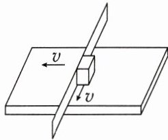 练4(2024·湖北模拟)一长方形木板放置在水平地面上,在长方形木板的上方有一条状竖直挡板,挡板的两端固定于水平地面上,挡板与木板不接触。现有一个方形物块在木板上沿挡板以速度 $ v $ 运动,同时方形木板以大小相等的速度向左运动,木板的运动方向与竖直挡板垂直,已知物块跟竖直挡板和水平木板间的动摩擦因数分别为 $ \mu_1 $ 和 $ \mu_2 $,物块的质量为 $ m $,则关于物块所受摩擦力说法正确的是(