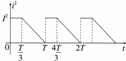 【解析】 根据题意,设交流电有效值为 $I_{有}$,根据交流电有效值的定义与图中的条件有 $I_{有}^2 R T = I^2 R × \frac{T}{3} + \frac{1}{2}I^2 R × \frac{2T}{3}$,解得 $I_{有} = \frac{\sqrt{6}}{3}I$,故选C项。