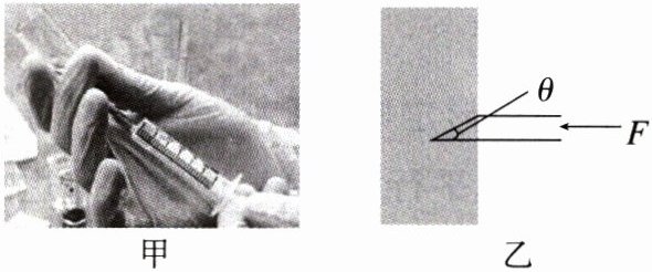 练 4 (2023·山东模拟) 在药物使用中应用到很多物理知识。两图分别是用注射器取药的情景和针尖刺入瓶塞的物理图样,针尖的顶角很小,医生沿着注射器施加一个较小的力 $F$,针尖会对瓶塞产生很大的推力。现只分析如图乙的针尖倾斜侧面与水平侧面对瓶塞产生的两个推力,则(