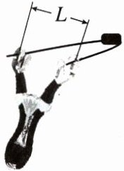 【解析】 根据胡克定律知,每根橡皮条的弹力$F = k(1.5L - L) = 0.5kL$,设此时两根橡皮条与合力的夹角为$\theta$,根据几何关系知$\sin\theta = \frac{1}{3}$,根据平行四边形定则知,弹丸被发射过程中所受的最大弹力$F_{合}= 2F\cos\theta = \frac{2\sqrt{2}}{3}kL$,故选B项。