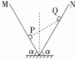 5. (2021·海南)如图,$V$ 型对接的绝缘斜面 $M$、$N$ 固定在水平面上,两斜面与水平面夹角均为 $\alpha = 60°$,其中斜面 $N$ 光滑。两个质量相同的带电小滑块 $P$、$Q$ 分别静止在 $M$、$N$ 上,$P$、$Q$ 连线垂直于斜面 $M$,已知最大静摩擦力等于滑动摩擦力。则 $P$ 与 $M$ 间的动摩擦因数至少为(