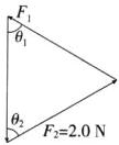 (2)由图丙可知,当$\theta_2 = \frac{\pi}{3}$和$0$时,$\boldsymbol{F}_2$的读数都为$2.0N$,根据平行四边形定则,画出如图所示的三角形