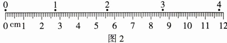 (2) 经正确操作后打出一条纸带,截取其中一段如图2所示。选取连续打出的点 $0$、$1$、$2$、$3$、$4$ 为计数点,则计数点 $1$ 的读数为