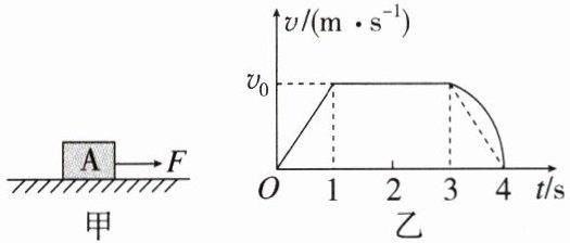 练4(2024·新疆模拟)(多选)如图甲所示,在粗糙水平面上,物块 $A$ 在水平向右的外力 $F$ 的作用下做直线运动,其速度—时间图像如图乙所示,下列判断正确的是(