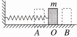 练3(2023·常德模拟)(多选)如图所示,弹簧左端固定,右端自由伸长到 $O$ 点并系住物体 $m$。现将弹簧压缩到 $A$ 点,然后释放,物体可以一直运动到 $B$ 点。如果物体受到的阻力恒定,则(