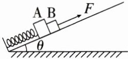 例 10 (2023·武汉模拟) 一轻弹簧的一端固定在倾角为 $\theta$ 的固定光滑斜面的底部,另一端和质量为 $2m$ 的小物块 $A$ 相连,质量为 $m$ 的小物块 $B$ 紧靠 $A$ 静止在斜面上,如图所示,此时弹簧的压缩量为 $x_{0}$。从 $t = 0$ 时开始,对 $B$ 施加沿斜面向上的外力,使 $B$ 始终做加速度为 $a$ 的匀加速直线运动。经过一段时间后,物块 $A$、$B$ 分离。弹簧的形变始终在弹性限度内,重力加速度大小为 $g$。若 $\theta$、$m$、$x_{0}$、$a$ 均已知,下面说法正确的是 (