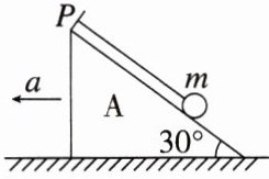 例 9 (2023·甘肃模拟) (多选) 如图所示,细线的一端固定在倾角为 $30^{\circ}$ 的光滑楔形滑块 $A$ 的顶端 $P$ 处,细线的另一端拴一质量为 $m$ 的小球,静止时细线与斜面平行 (已知重力加速度为 $g$)。则 (