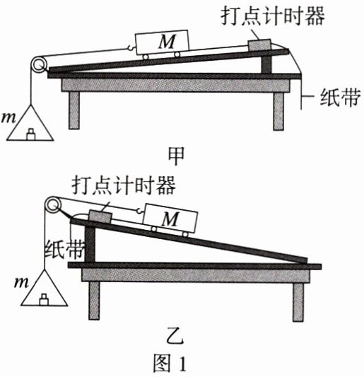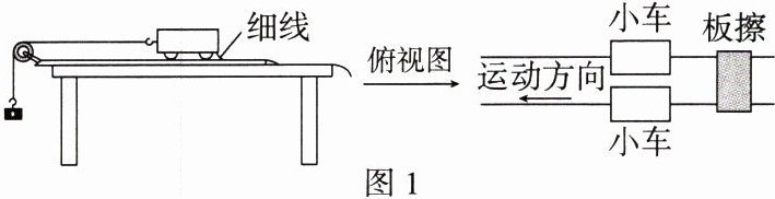 (1) 为猜想加速度与质量的关系,可利用图 1 所示装置进行对比实验. 两小车放在水平板上,前端通过钩码牵引,后端各系一条细线,用板擦把两条细线按在桌上,使小车静止. 抬起板擦,小车同时运动,一段时间后按下板擦,小车同时停下. 对比两小车的位移,可知加速度与质量大致成反比. 关于实验条件,下列正确的是:______ (选填选项前的字母).