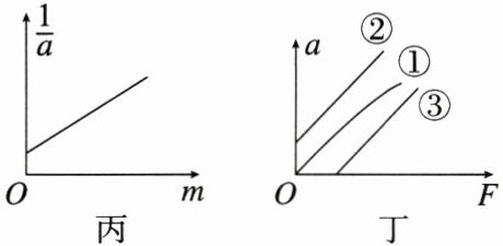 (用 $ p $、$ k $ 表示).(4) 实验得到的理想 $ a - F $ 图像应是一条过原点的直线,但由于实验误差影响,出现如图丁所示的三种情况.