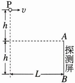 例2(2016·浙江)在真空环境内探测微粒在重力场中的能量的简化装置如图所示。$ P $ 是一个微粒源,能持续水平向右发射质量相同、初速度不同的微粒。高度为 $ h $ 的探测屏 $ AB $ 竖直放置,离 $ P $ 点的水平距离为 $ L $,上端 $ A $ 与 $ P $ 点的高度差也为 $ h $。(重力加速度为 $ g $)