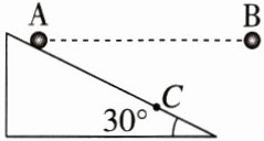 例1(2023·滁州模拟)如图所示,位于同一水平高度的小球 $ A $、$ B $ 分别以 $ v_1 $ 和 $ v_2 $ 的速度水平抛出,都落在了倾角为 $ 30° $ 的斜面上的 $ C $ 点,且小球 $ B $ 恰好垂直打到斜面上,则(
