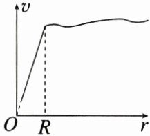 (2)在$r \leq R$内部,星体质量$M_{0} = \frac{M}{\frac{4}{3}\pi R^{3}} \cdot \frac{4}{3}\pi r^{3} = \frac{Mr^{3}}{R^{3}}$由万有引力定律和向心力公式有$\frac{M_{0}m}{r^{2}} = m\frac{v^{2}}{r}$解得$v = r\sqrt{\frac{GM}{R^{3}}}$