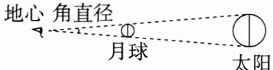 2. (2023·辽宁)在地球上观察,月球和太阳的角直径(直径对应的张角)近似相等,如图所示。若月球绕地球运动的周期为$T_1$,地球绕太阳运动的周期为$T_2$,地球半径是月球半径的$k$倍,则地球与太阳的平均密度之比约为(